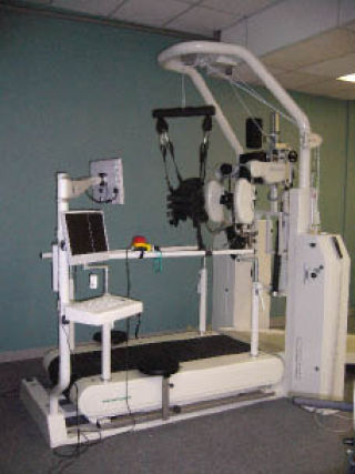 Here’s how it works: A person strapped into a harness is suspended over a treadmill, where they are attached to robotic sensors. They help move the legs in a natural walking pattern that is even, consistent and can be sustained over long periods of time.
