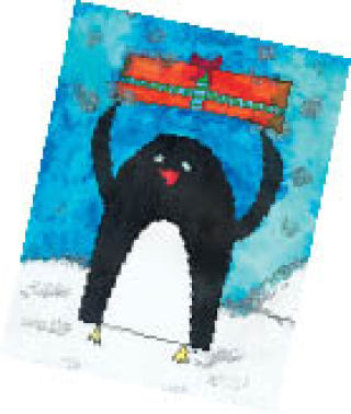 Seven-year-old Jake, who also earned honorable mention in Lands’ End’s 2007 Kids’ Holiday Art Contest, earned first place this year with a watercolor penguin presenting a glittery gift.
