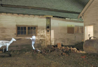In a phone interview, Beckman noted, “Part of my body of work is these site-sepecific projections out in the community and out of the traditional, ‘white box’ gallery setting. It’s mostly projections of people who act as characters … electronic characters made of ones and zeros, digital images. I may do some video projections of me lip-synching to country music songs and miming. … At first glance, it looks very much like a real person.”