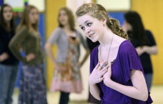 Two ninth grade stage managers are directly involved in the production. Megan Cote will run the show from backstage and Tina Joehnk will call the show (lights, sounds, music, curtain, etc.) from the booth.