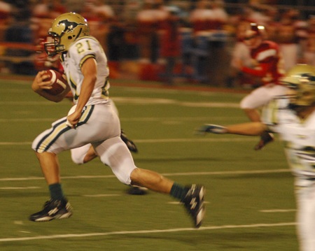Running back Cole Hardwick rushed for a team-high 96 yards for the Mustangs (1-1 in division play, 1-4 overall).