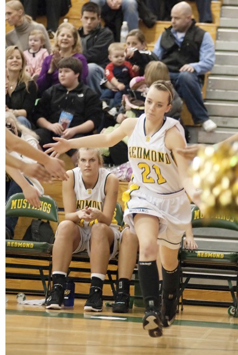 On Redmond High’s Senior Night, during a crucial 4A Kingco girls’ basketball game against Skyline that would potentially doom the Mustangs’ playoff chances with a loss, one senior — playing with a heavy heart — stood out among the rest.