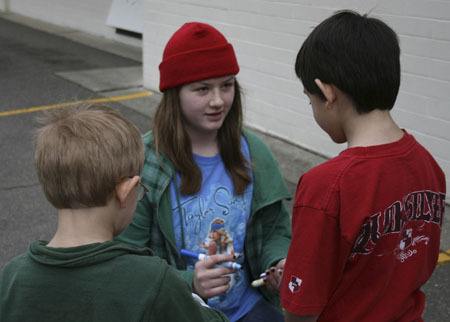 On Fridays, during lunch recess, sixth graders from Rockwell’s Student Council set up three different areas in the playground where the special-needs children are invited to play quiet games, active games such as jump-rope or hop-scotch and throwing games such as tossing a velcro frisbee or beach ball.