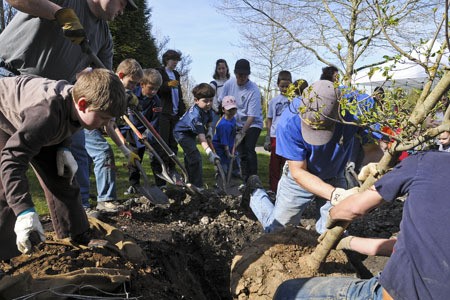 Participants of all ages planted five celestial dogwood trees and several native trees as part of the City of Redmond Arbor Day celebration Wednesday afternoon at Cascade View Park.