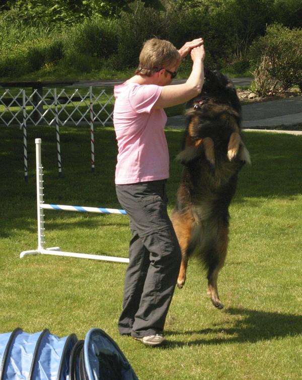 Linda Shea interacts with Poppy, a Belgian Tervuren, during the dog agility contest at the second annual “Whiskers, Wings & Wagging Tails” pet fair at the Redmond Senior Center last Saturday.