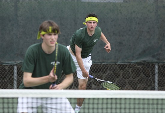The doubles team of Jake Imam (rear) and Jamie Meyer placed second at the state 1B/2B/1A tennis tournament in Yakima last weekend