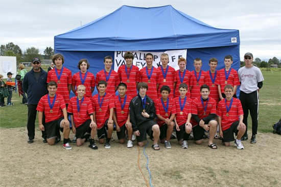 The Crossfire Select BU-16 O’Melia team, containing many players from Redmond, won the Puyallup Valley Kickoff Championship defeating the PSC Hurricanes 2-1 in the title game. Alex Ma scored the game-winner with one minute left to play from Clayton Over’s assist. Pictured top row, from left: Assistant Coach Chris Jowell, Will Crosier, Zach Whalen, Larry Wilkins, Andrew Hirst, AJ Fazzio, Clayton Over, Jack Callahan, Cullen Jowell, Nick Heft, Matt Stone, Coach Barry O’Melia. Bottom row, from left: Max Zambrowsky, Tim O’Melia, Alex Escobar, Alex Ma, Alex Anderson, Javier Zavala, Dan Stone, Pedro Dutra, Nick La Cava.