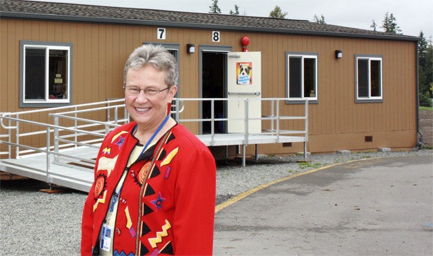 Rosa Parks Elementary school principal Dr. Lin Zurfluh stands in front of one of four portables on school grounds. Rosa Parks Elementary in the Redmond Ridge development was built for 500 students. In its fifth year