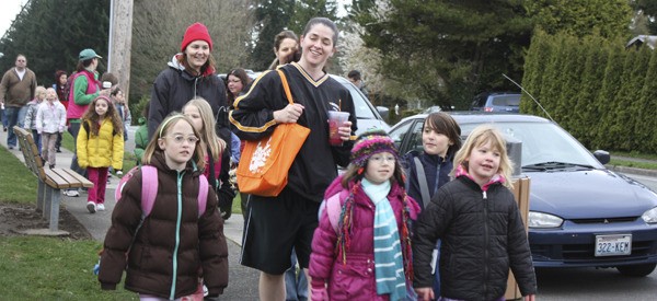 Hartford, who was selected as a 2011 Earth Hero at School by King County, said while this was the first Walking School Bus day, the school already has a monthly walk-to-school day. She said the days were initiated by the Green Team and began as a way to lessen the traffic coming in and out of Horace Mann, located at 17001 N.E. 104th, in the morning, which often spills onto the street. Also, in conjunction with the no-idle zone parking lot, the walking days were also a way to lessen car emissions on campus.