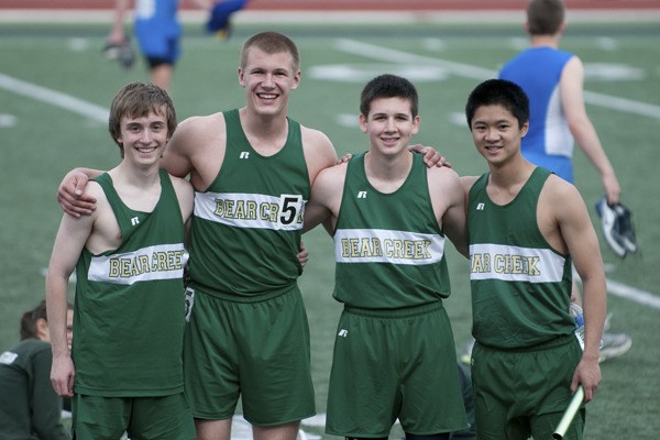The Bear Creek boys' 400 meter relay team took the district title with a time of 45.72
