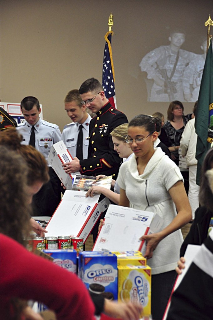 On Thursday evening, about 100 people were at Lake Washington Post 2995 of Veterans of Foreign Wars (VFW) to pack and ship care packages to front-line troops in Afghanistan and Iraq.