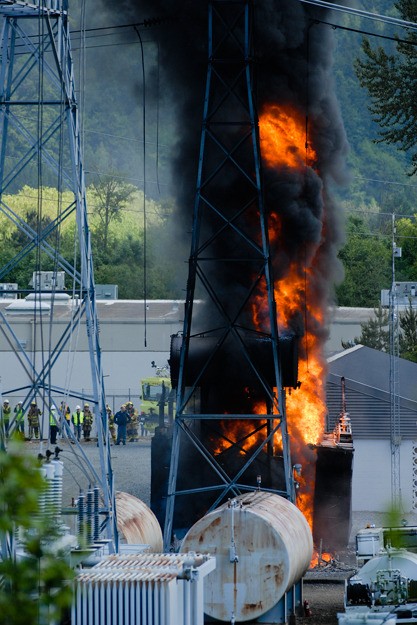 Martha Monfried, director of corporate communications for PSE, confirmed that some mineral oil — a non-toxic substance used as a coolant and conductor in the substation transformer — caught fire around 12:20 p.m., causing the Sammamish substation in the 9400 block of Willows Road to erupt in flames.