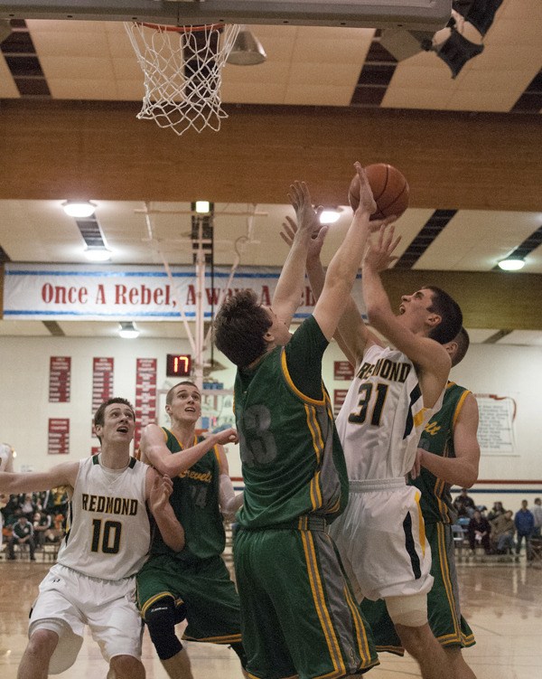 In the third quarter, however, Redmond found an edge in senior Jason Harrington, who shot 3 of 4 in the period and capped off a 9-0 Redmond run as the Mustangs took a 28-27 lead going into the fourth.