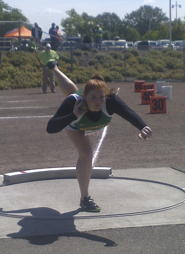 Redmond High School senior Jessica Kinssies once again broke her own school record in the shot put