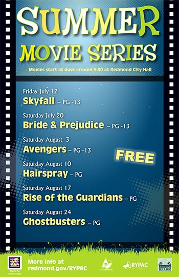RYPAC’s summer movie series at Redmond City Hall begins July 12