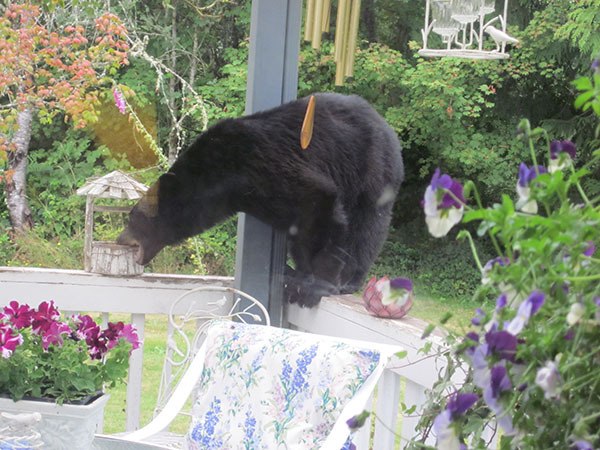 “He climbed on our picnic table and deck to eat bird seed,” said resident Barbara Mar. “But he was a perfect gentleman and didn’t knock over anything!”