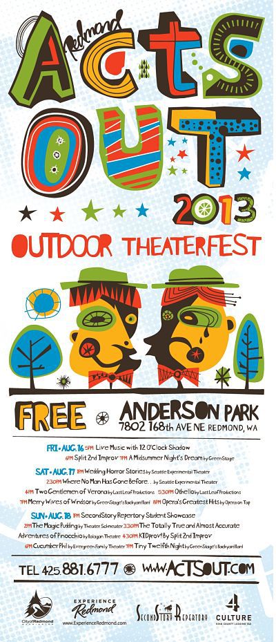 The City of Redmond‘s free ACTS OUT 2013 outdoor theater fest on Aug. 16-18 will feature theater classics, comedy, contemporary work and family shows staged by top Northwest theater companies.