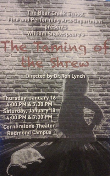The Bear Creek School (TBCS) Fine and Performing Arts Department will perform William Shakespeare’s comedy “The Taming of the Shrew” at 4 p.m. and 7:30 p.m. on Jan. 16 and 18.