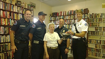 After reading about the Redmond Fire Department’s Pancake Breakfast, the staff put together a raffle basket (estimated value at more than $100) and chose the Redmond Fire Department (RFD) Benevolent Fund as the beneficiary. On July 31, four members of the RFD (pictured — Capt. John Keffer, Lt. Matt Peterson, firefighter Scott Carlson and driver Mark Mullins) came to the bookstore for the drawing. McDonald’s owner Anne St. Germain (pictured) matched the funds raised from ticket sales. Keffer chose the lucky ticket, the winner has been notified and the Reporter will print their name at a later date.