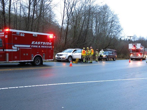 There were no injuries reported after a semi truck collided with a car Tuesday morning along State Route 202 at 218th Avenue Northeast in unincorporated King County outside of Redmond.