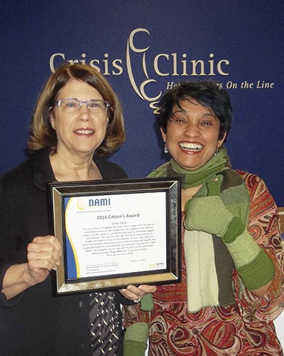 Crisis Clinic was recently honored with the NAMI Citizen’s Award, which was presented at NAMI Eastside’s annual meeting, held at the Together Center in Redmond. NAMI Eastside’s mission is to improve the quality of life of all those affected by mental illness through advocacy, education and support.