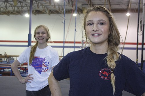 Emma Anson and Elly Yochum joked with each other as they stretched during a gymnastics workout on Tuesday afternoon.