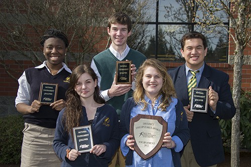 On March 5-7, the team competed in speech and debate events at the NSDA’s National Qualifying Tournament at Snohomish High. In the Lincoln-Douglas Debate event, three of the four competitors in the final round, and both national qualifiers in the event were Grizzlies. In the final speech event of the tournament, Original Oratory, once again, both national qualifiers were Grizzlies.