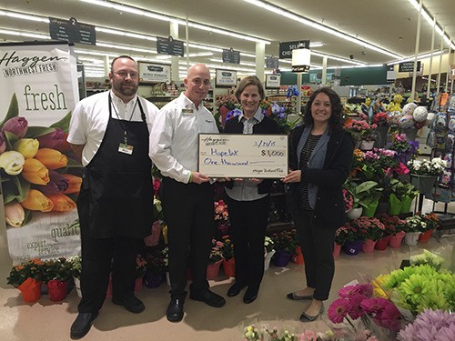 Haggen of Redmond manager Ben Floyd, second from left, recently handed over a $1,000 check to Hopelink representatives.