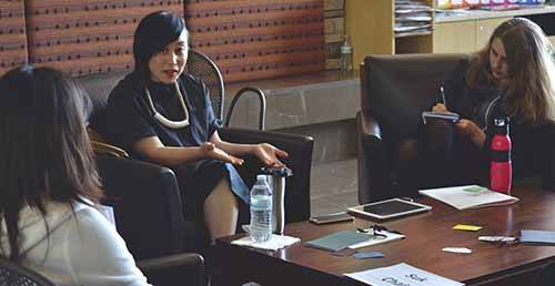 Cheryl Platz, actress and keynote speaker and presenter; Serin Ngai, actress, playwright and family law attorney with her own solo practice; Hollis Wong-Wear, writer, performer and creative producer; Brenda Alamo, artist; Jenny Lam, co-founder of Jackson Fish Market, a small software startup and design consultancy; Natasha Marin, writer, community-builder and interdisciplinary artist; Moorea Seal, retailer, designer and online curator; Suk Chai, designer/founder of alternative luxury RTW SCHAI.