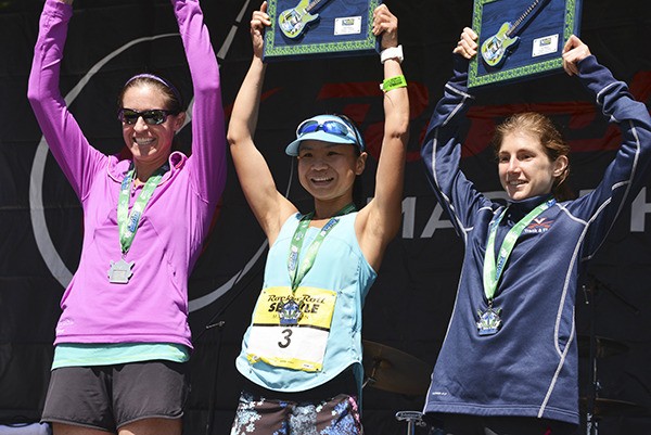 Redmond’s Ziyang (Sophia) Liu, middle, placed second in the women’s division of the Seattle Rock n’ Roll Marathon on Saturday with a time of 2:57.15.