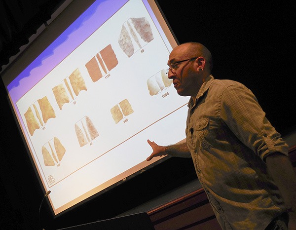 In front of a packed house of about 275 people at the Redmond Historical Society’s Saturday Speaker Series, Kopperl dug into his lecture about he and his team discovering more than 4,000 stone artifacts — including tools, flakes, scrapers, spear points and more — in 2009 and 2013 underneath peat along Bear Creek during the city’s salmon restoration project. It is a site where arrowheads and other hunting tools were made some 10,000 years ago.