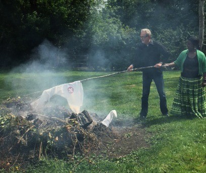 From Rags to Riches owner Leona Coakley-Spring and her supporters burned the Ku Klux Klan-like garments on Tuesday afternoon that a man dropped off at her Redmond consignment store in January. The burning took place in Coakley-Springs’ neighbor’s back yard in Redmond.