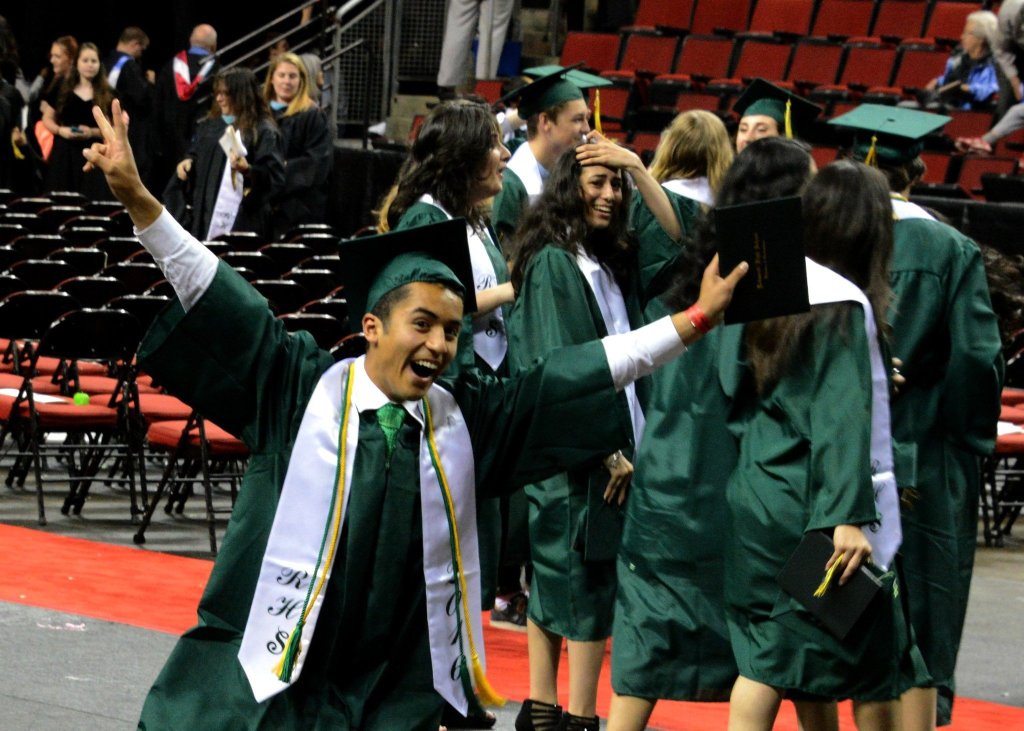 Redmond High graduate Jacob Montiel-Bravo celebrates after tonight’s commencement at KeyArena in Seattle. More photos to come.