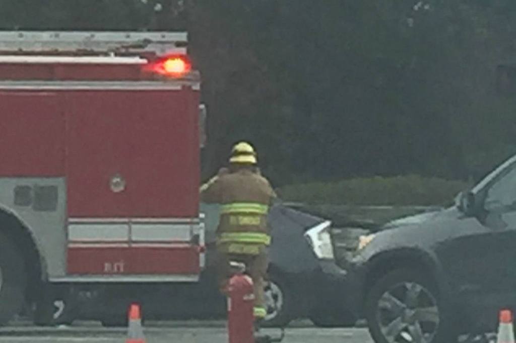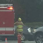 A Redmond Fire Department crew tends to an injured driver in this morning’s accident. Courtesy of Allison DeAngelis