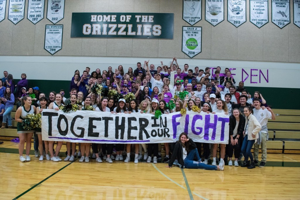 On Friday evening, the entire student body was encouraged to don their purple attire and come out to support the cause and the Grizzlies at the basketball games against local rivals, the Overlake Owls. In a show of solidarity for the cause and unity for the school, the gym was packed with purple all evening. Overlake students also supported the cause by selling T-shirts on Thursday and Friday at their school the same week.