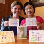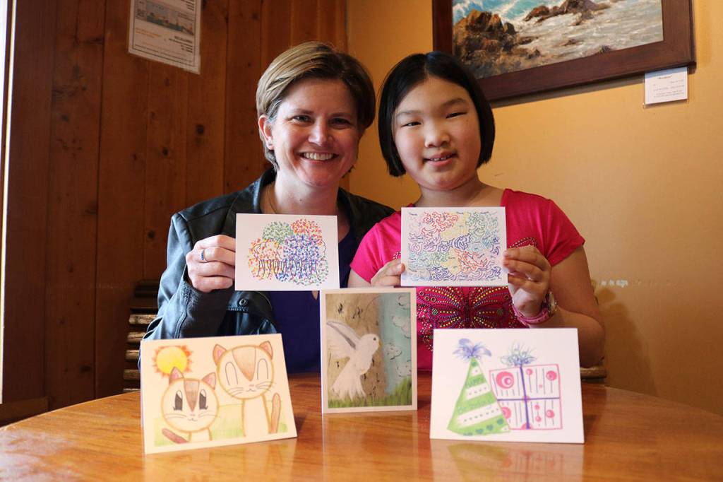 From left, Jenny and Megan Lisk with cards designed by Megan to raise money for brain cancer research. Samantha Pak, Redmond Reporter