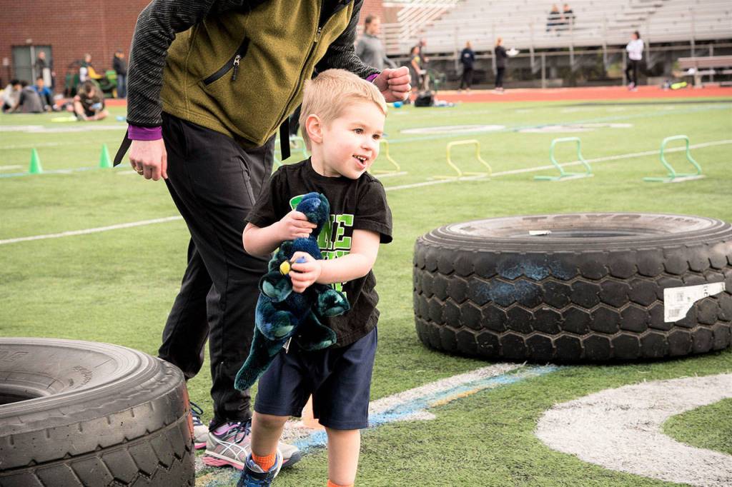 Landon Johnson, 3, runs the obstacle course at Saturday’s Redmond Relays on the high school track. The fundraising and exhibition event featured Redmond High athletes, with races and field events for the entire community. Proceeds from the event — which also featured a silent auction — will support out-of-town travel expenses, team T-shirts and equipment needs for 175 co-ed track and field athletes. Redmond Super Jock ‘n Jill, Redmond Trader Joes and Plateau Runners supported the event. Photo courtesy of Stuart Lui