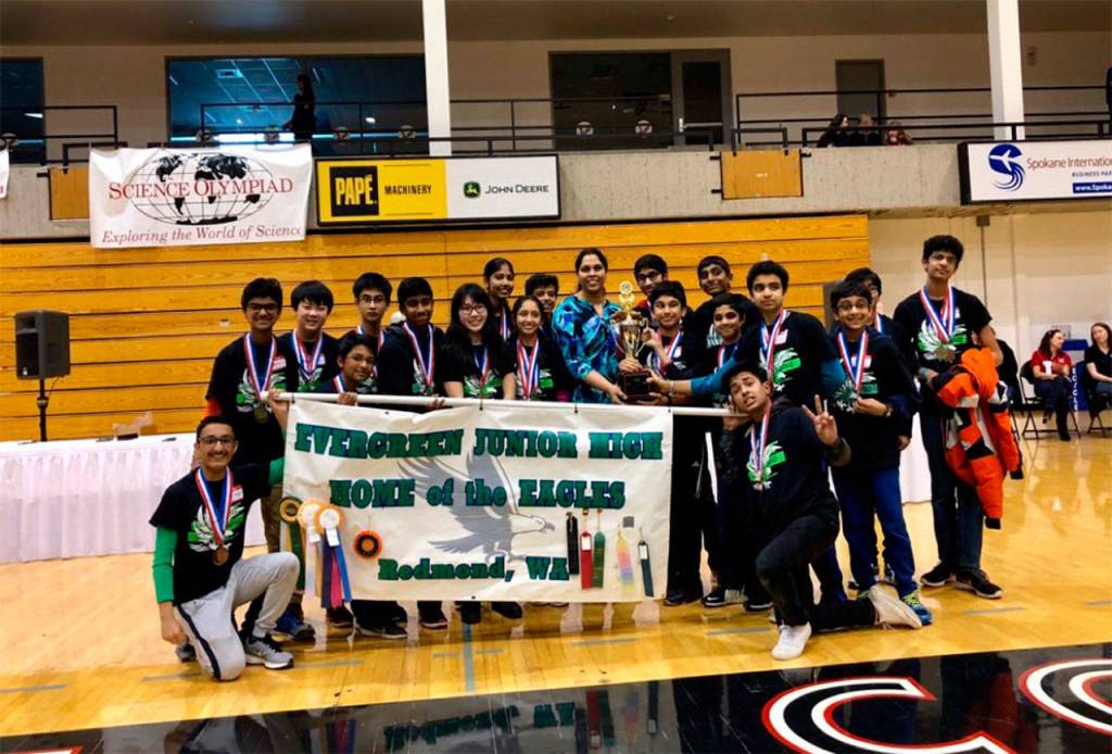 Evergreen Middle School (EMS) Team Green came first in the Washington Science Olympiad State finals on April 14 at Eastern Washington University, Cheney.