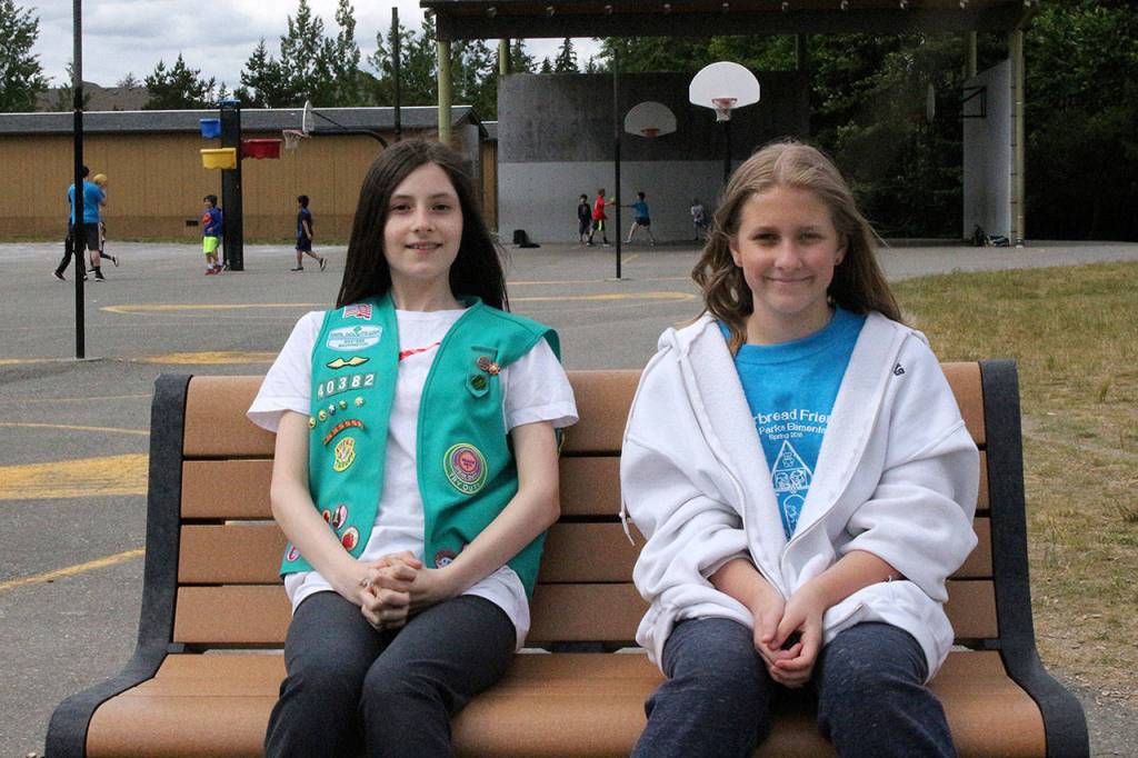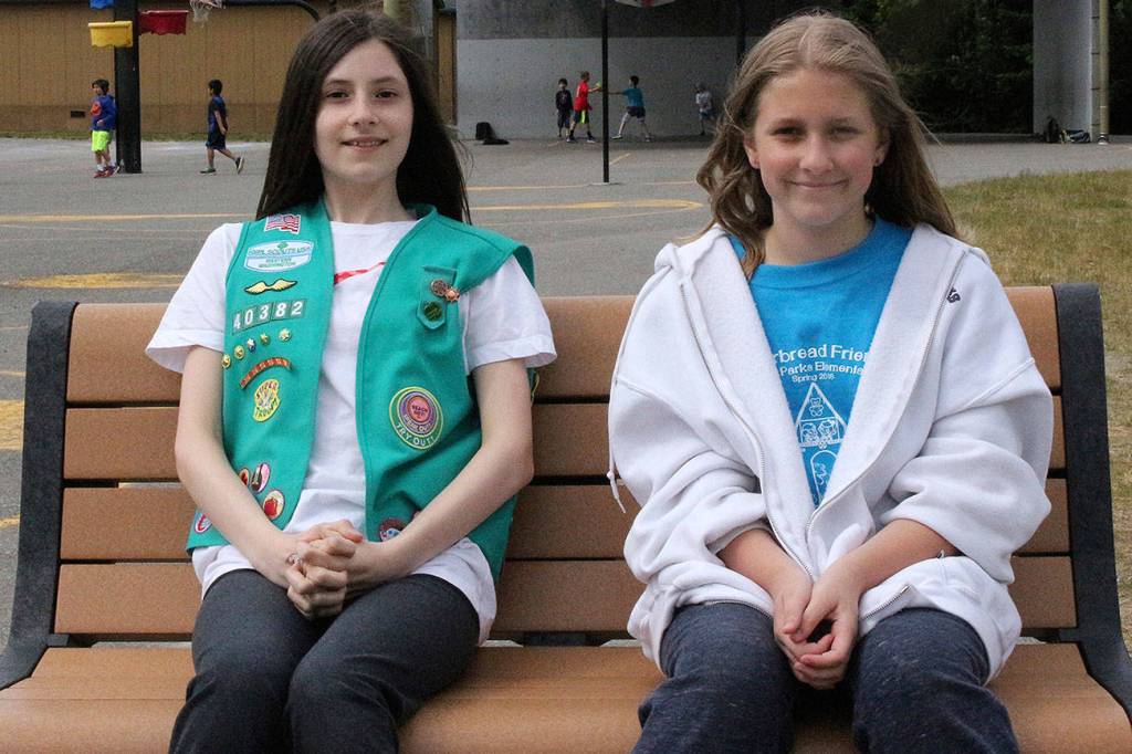 Miriam Terdina and Ellie Hagen, fifth-graders at Rosa Parks Elementary School on Redmond Ridge are finishing their junior level as members of Girl Scout Troop 40382.
