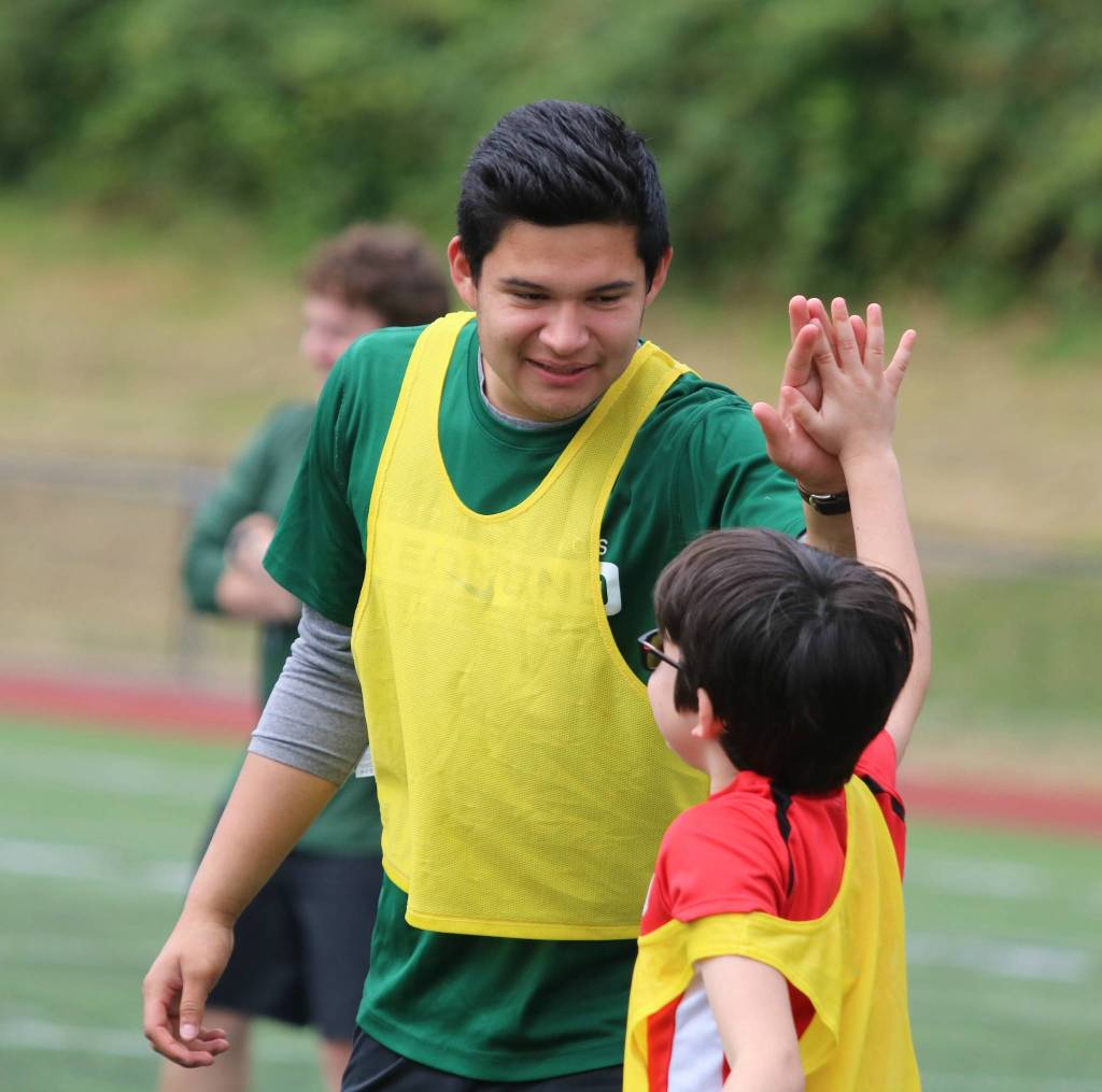 Varsity returner Jacen Stein looked just as happy exiting the field as he did after the Mustangs won the KingCo title. Stein said he helped get the youngsters focused on having a positive attitude, dribbling and putting the ball in the back of the net.