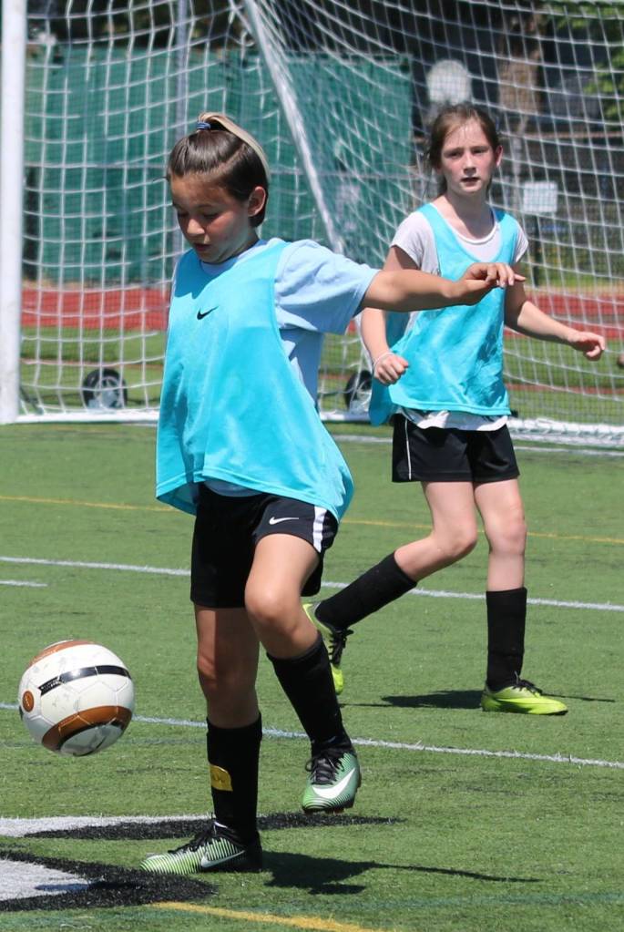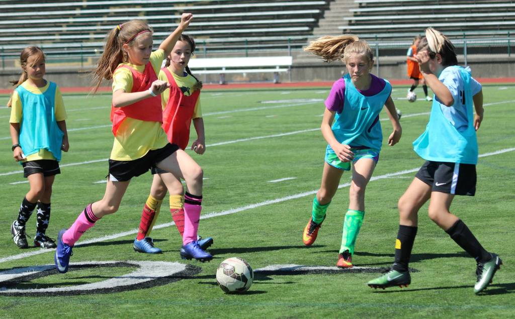 That’s what transpired on the Redmond High soccer pitch this week at the third annual Jr. Stangs Soccer Camp for girls ages 7-12. Sponsored by the girls soccer booster club, a camp-high 60 youngsters and 40 RHS players bonded with each other while focusing on passing and receiving, dribbling, shooting, agility and more to gear up for their fall soccer seasons.