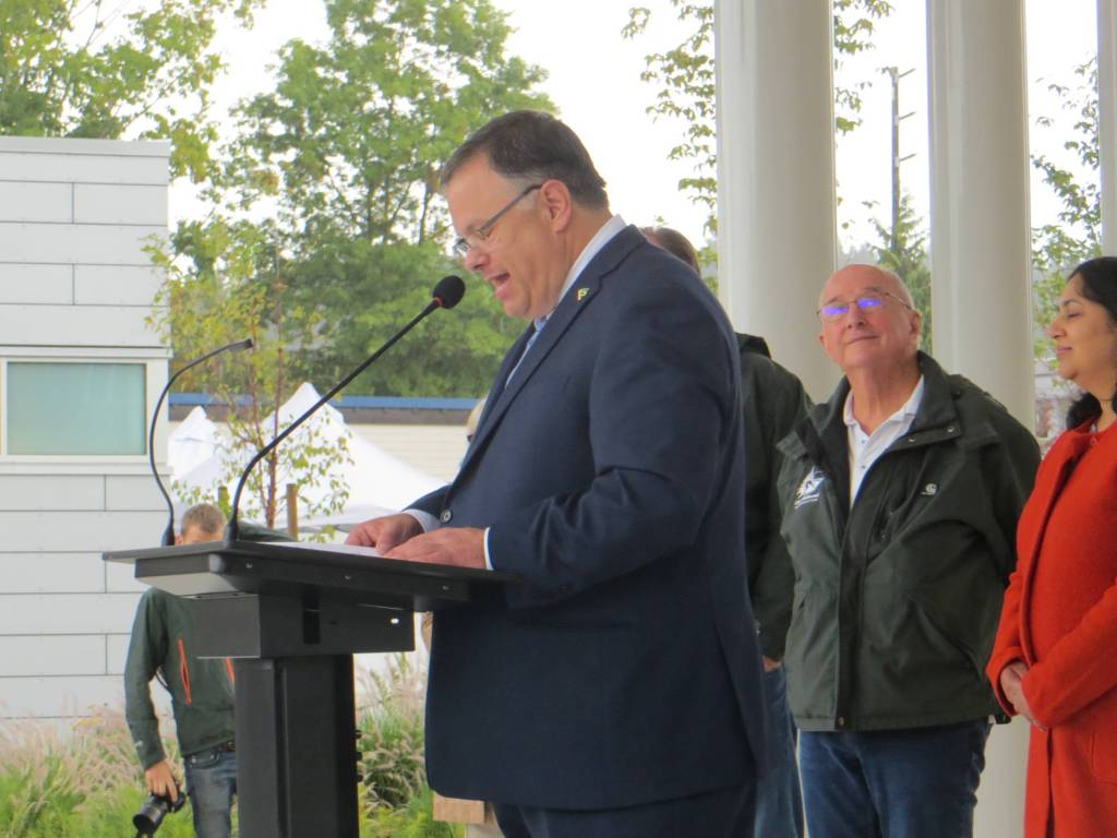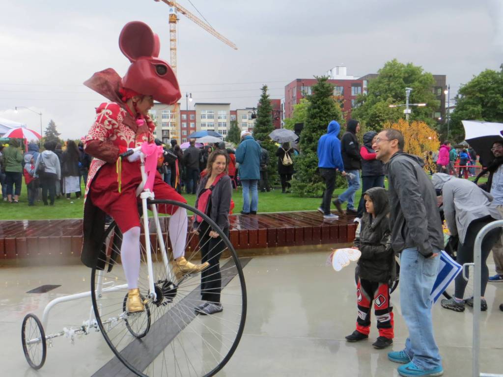 The rain was not enough to stop a sizeable crowd from attending the grand opening of Redmond’s Downtown Park on Sept. 15. The event kicked off with Mayor John Marchione, City Council president Angela Birney and Rep. Joan McBride of the 48th Legislative District sharing a few words about what it took to make the park happen, followed by a ribbon cutting. Youngsters also had a chance to play in the park’s splash pad. The event also included a performance by Lucia Neare’s Theatrical Wonders as well as a digital art installation at the Pavillion in the park by artist in residence Maja Petric.
