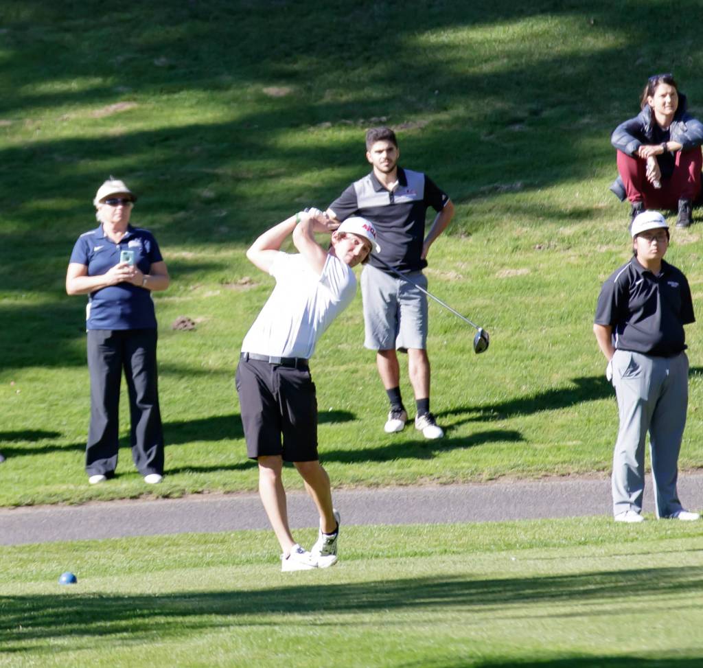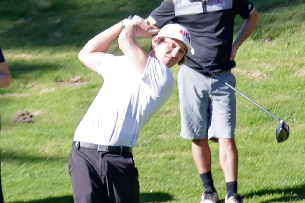 Bear Creek senior Oliver Nordberg (pictured) took first at the Emerald City League boys golf championship Oct. 16 at Bellevue Golf Course. He came from two strokes behind after hole 16 and birdied holes 17 and 18 to pull into a tie. He then birdied the playoff hole to win first place and league MVP with a score of 74. Bear Creek freshman Aaron Moore had the best score (79) of any new player and earned Rookie of the Year honors. Nordberg, Moore and senior Jon Campbell earned first team all-league honors. The Bear Creek boys golf team placed second at the tournament behind Seattle Academy. Photo courtesy of Howard Campbell