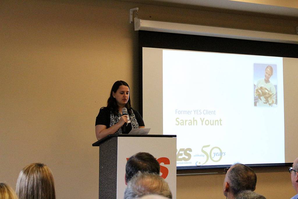 Sarah Yount, a former YES client, was the celebration’s keynote speaker. Yount said she started mental health counseling when she was 14 after her father sexually abused her. Going from counselor to counselor, she said she couldn’t find the right one. Her behavior became more “risky” and she said her “acting out” was a way to receive attention. After attempting suicide, she was connected to a counselor through YES in Kirkland who taught her healthy coping skills and ultimately led her to living a healthy life.