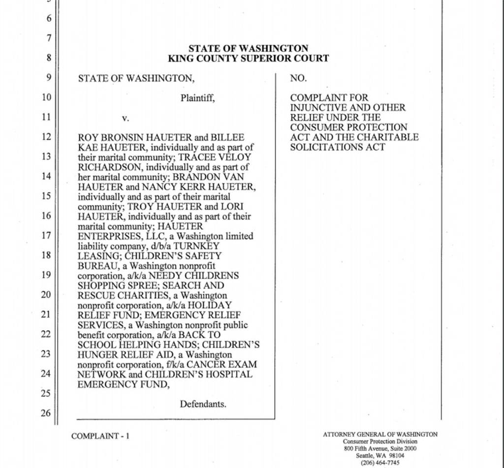 “Many Washingtonians donated to the Haueters’ organizations believing their money would go toward one beneficiary, when in fact that money went toward a completely different person in need, or no beneficiary at all,” the attorney general’s office wrote in the press release.