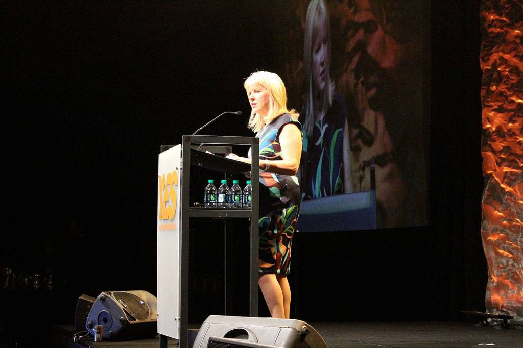 Patti Skelton-McGougan, CEO of YES, restate the vision and impact YES has on the lives of local youth at the Invest in Youth Breakfast on March 20. Madison Miller/staff photo