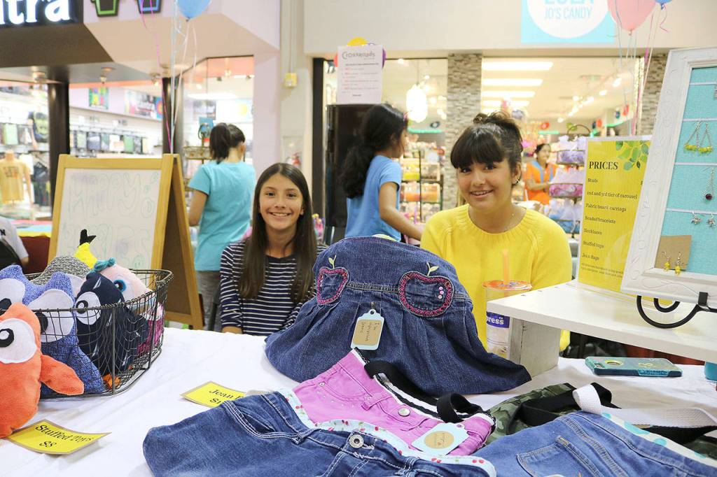 Redmond sister duo, Sofia (left) and Aaliya Osmanbhoy sold jewelry, up-cycled jean purses and stuffies at the business fair on Aug. 31. Stephanie Quiroz/staff photo