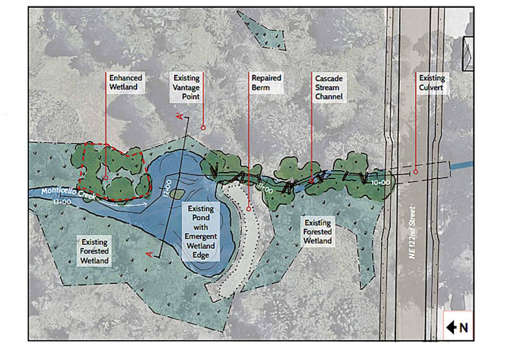 After evaluation of different criteria, Flanagan said the staff and design consultant set on option one, which retains the pond and stream as preferred. Flanagan said the first option will restore the stream channel from the pond outlet down to Northeast 122nd Street to allow fish passage through the creek. Option one also maintains the pond, meets environmental permitting requirements and fits within current funding.