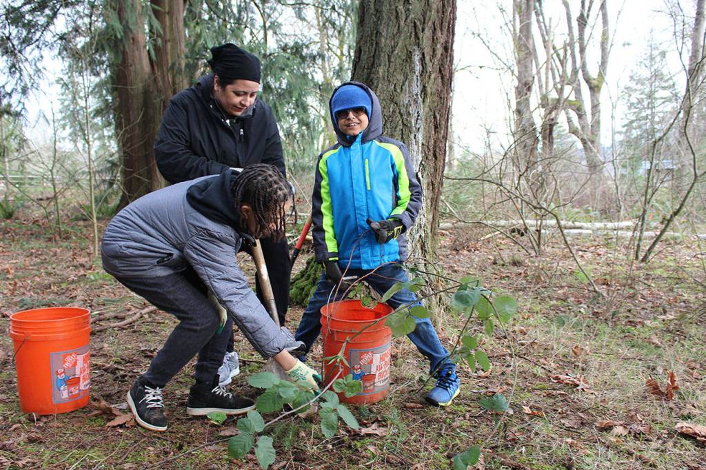 The volunteers cleared English ivy and Himalayan blackberries — both of which are non-native to the area — along Idylwood Creek. Their work took them deep into the woods near an area where mountain beavers have been known to live, Idylwood forest steward Laurie Gogic said.