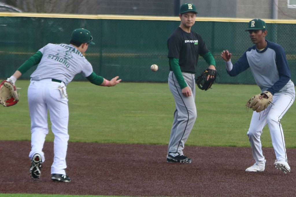 Over at Redmond High practice on March 11, head baseball coach Dan Pudwill said: “I think like a lot of people, we’re just following guidance from people higher on up and there’s some suggestions and whatnot like good hand hygiene, so we talk about washing hands.” He added that they’re not shaking hands or high-fiving.